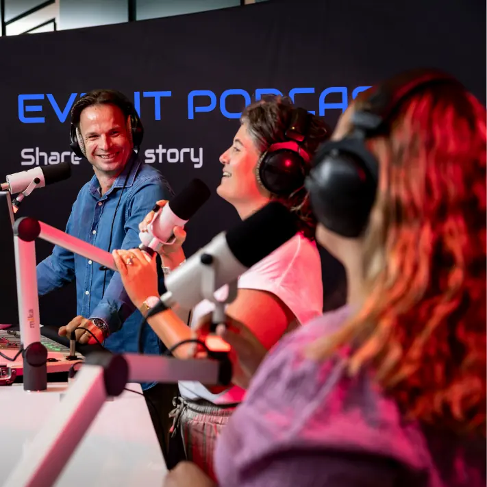 Een podcast maakt van je evenement meer dan een momentopname. Bezoekers kunnen gesprekken terugluisteren, delen met collega’s of gebruiken als inspiratiebron. En wie er niet bij kon zijn, mist niets. Zo blijft jouw verhaal leven, groeit je bereik en verleng je de waarde van je event. Keer op keer.
